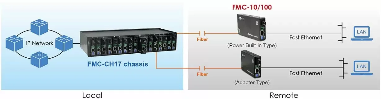 May be concentrated into FMC-CH17 chassis (Adapter Type only)