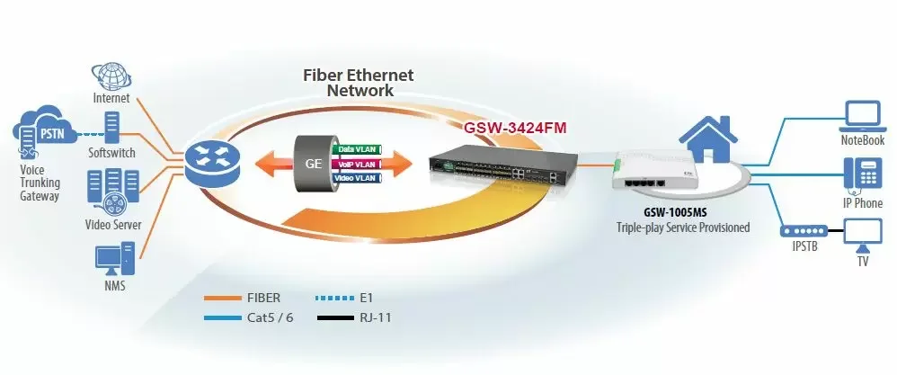 CTC Union Technologies unveils an SNMP manageable Gigabit Ethernet switch for FTTx deployment, GSW-3424FM, which is targeted at multi-service operators (MSO) with a desire to deploy provisioned triple play services via active Ethernet FTTx network infrastructures. Fiber based network infrastructures offer the data rates required by triple play services such as high-speed internet access, VoIP and HD IPTV.