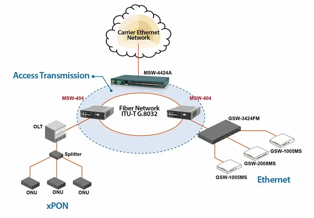 The MSW-404 device enables carriers and service providers to deliver SLA-based network service with extensive fault detection and diagnostic capabilities which are compliant with the latest Ethernet OAM standards such as IEEE 802.3ah, IEEE 802.1ag and ITU-T Y.1731. With built-in RFC2544 and ITU-T Y.1564 feature sets, the MSW-404 also enables the service providers to perform the SLA verification anytime to ensure the quantitative latency, jitter and throughput delivery performance indexes. The CE2.0 compliant functions support EVCs and 3 colors marker QoS traffic management to enable service providers management of bandwidth and to enforce SLA guarantees.