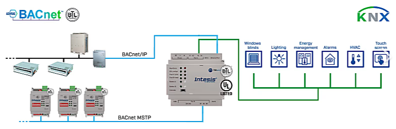 Integrate any BACnet MS/TP or BACnet/IP server device with any KNX device or system. This integration aims to make BACnet objects data and resources accessible from a KNX system as if they were a part of the KNX system and vice versa.