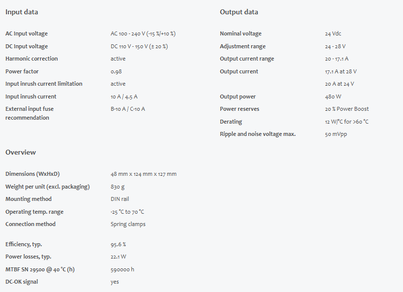 DC output24 - 28 Vdc | 20 - 17.1 A4 | 80 W