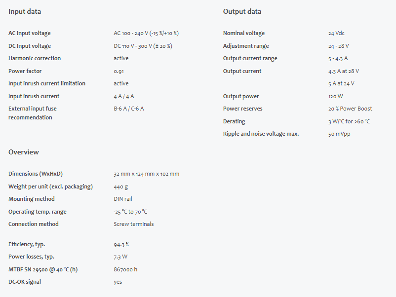 DC output24 - 28 Vdc5 - 4.3 A120 W