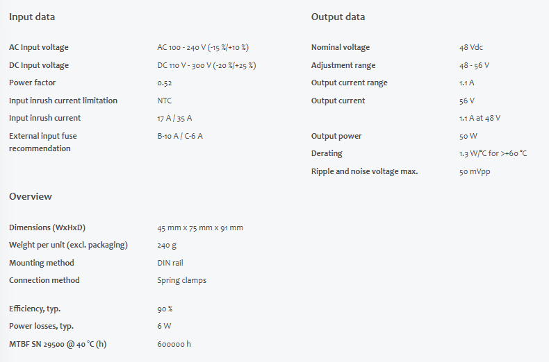 DC output48 - 56 Vdc1.1 A50 W