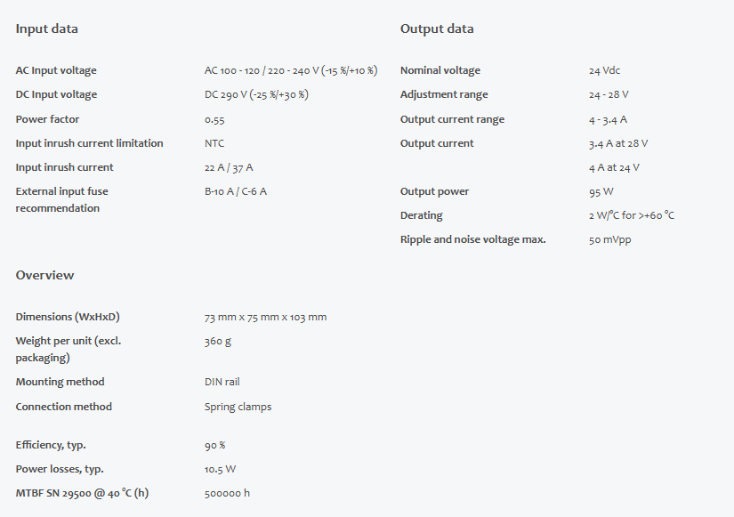 DC output24 - 28 Vdc4 - 3.4 A95 W