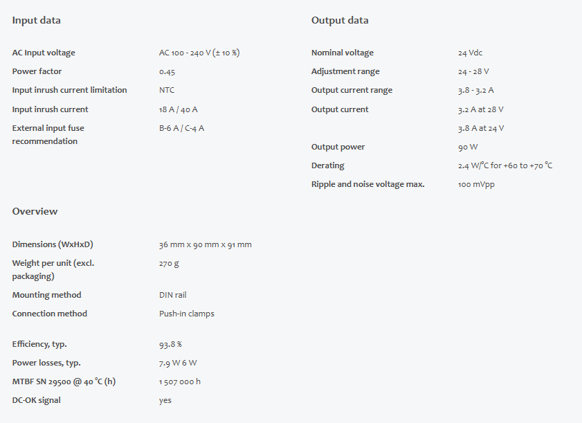 DC output24 - 28 Vdc3.8 - 3.2 A90 W