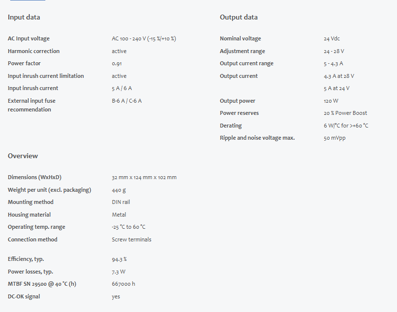 DC output 24 - 28 Vdc5 - 4.3 A120 W
