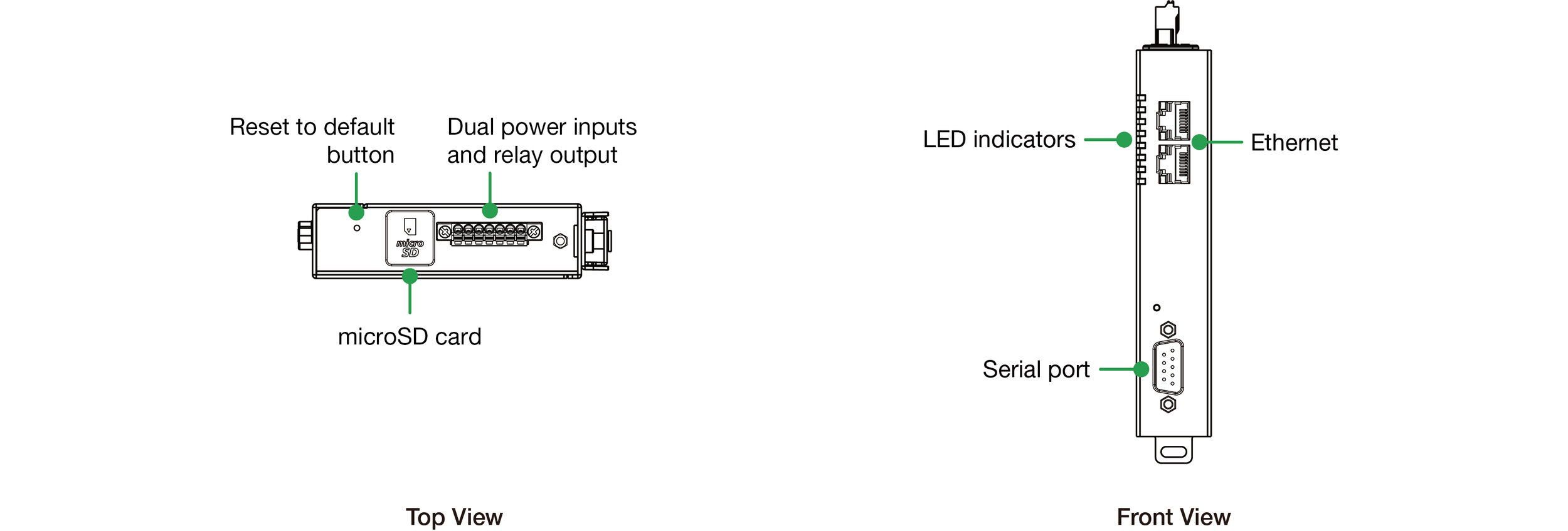 Supports dual redundant DC power inputs and 1 relay output